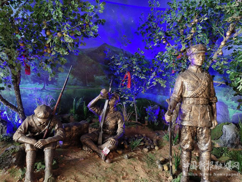 走進(jìn)紅色教育基地,接受黨性教育是這次采風(fēng)活動的一個重要主題,22日上午,詩人們走進(jìn)桂陽縣正和鎮(zhèn)朝陽村李家自然村,懷著崇敬的心情聆聽王金鳳講解“夜宿梨山,秋毫無犯”的故事。在展廳,詩人們認(rèn)真觀看視頻、圖片、文字和雕塑,對紅軍“夜宿梨山,秋毫無犯”的故事贊不絕口。1934年7月23號,紅六軍團(tuán) 作為長征先遣隊,在任弼時、蕭克、王震等同志的率領(lǐng)下,從江西遂川出發(fā),揮師西進(jìn)。一路上,紅六軍團(tuán)采取聲東擊西的戰(zhàn)術(shù),日夜兼程,終于突破敵人的四道封鎖線,進(jìn)入湖南。8月18號傍晚,紅六軍團(tuán)勝利抵達(dá)桂陽,其中通訊連在離縣城5公里的燕山村李家自然村梨山宿營。當(dāng)時,由于消息閉塞,鄉(xiāng)親們不知道是什么隊伍進(jìn)駐,加上當(dāng)?shù)乇iL的反動宣傳,嚇得都躲到了附近山上。時值初秋,梨山的梨子已熟透,黃澄澄的,在微風(fēng)吹拂下,芳香誘人。梨子是鄉(xiāng)親們的命根子,靠它來換油、米、鹽,養(yǎng)家糊口。“即將收獲的梨子,這回怕是要被糟蹋殆盡了。”躲在附近山上的鄉(xiāng)親們一夜難眠。紅軍離開后,鄉(xiāng)親們迫不及待地跑到梨山一看,既沒有看到采摘的痕跡,也沒有看到吃過的梨核,只見樹底下堆著一堆堆被晚風(fēng)吹落的梨子。原本擔(dān)心梨子被吃光的鄉(xiāng)親們見此情景十分感動:“世界上竟然有這么紀(jì)律嚴(yán)明的軍隊!”于是你家摘一籃、他家摘一籃,湊了一擔(dān)梨,派村民李友生挑著梨去追紅軍,給紅軍解解渴。追到紅軍宿營地,卻被一個干部給攔住了,‘不要你們的,不要你們的’。”李友生只好把梨擔(dān)回了村里。李友生擔(dān)回來了以后,就把事情告訴了大伙,大伙兒都十分感動,就一傳十、十傳百,傳開了。大家都說紅軍是好人,不但住在梨山不吃梨子,并且送他們梨子他們都不要。艱難跋涉在長征路上的紅軍將士,“夜宿梨山,秋毫無犯”,留下了滿山熟透的梨子,更留下了我們黨、紅軍與百姓的魚水深情。