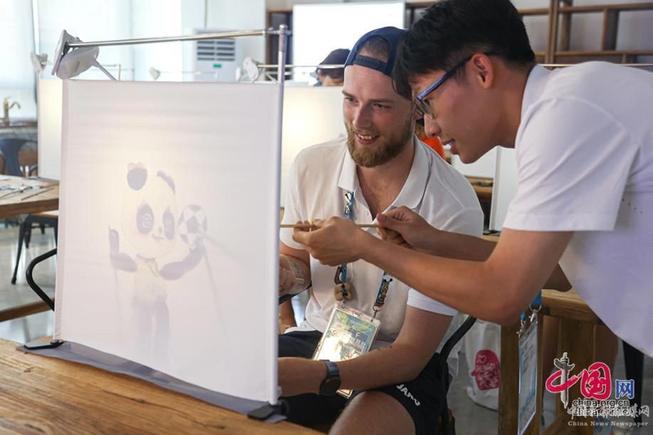在皮影戲表演室,荷蘭代表團(tuán)教練Hugo de Thouars正與幾名運(yùn)動(dòng)員一同體驗(yàn)皮影藝術(shù)。在老師的指導(dǎo)下,他手中的熊貓皮影也逐漸在幕布上“活”了起來。“這是一次非常新奇的體驗(yàn),也希望能體驗(yàn)到更多不同的傳統(tǒng)中國文化”,初次接觸皮影戲的Hugo de Thouars興奮地說。