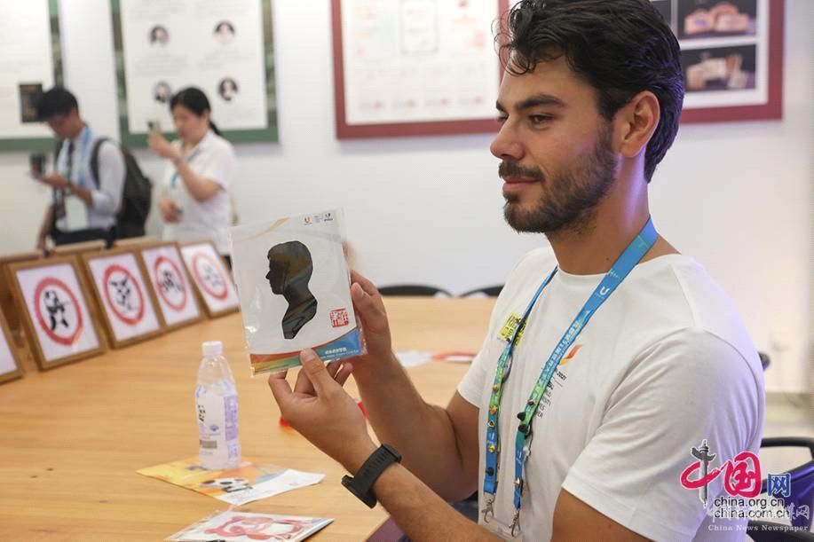 荷蘭運(yùn)動(dòng)員Wessel Hesselink收獲了一枚自己側(cè)臉輪廓的剪紙作品。中國網(wǎng)記者 倫曉璇 攝