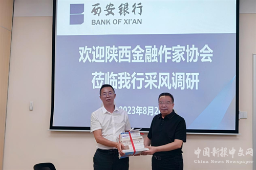 采風(fēng)組金融作家向西安銀行商洛分行贈(zèng)送金融作家創(chuàng)作出版的文學(xué)專著。