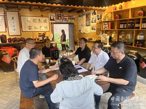 采風(fēng)組成員深入某酒莊采訪商洛市非遺項(xiàng)目傳承人周群良(右二)先生。
