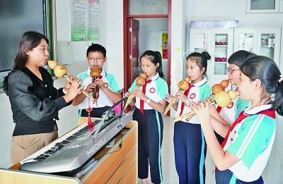 近年來(lái),河北省承德市雙橋區(qū)各中小學(xué)通過(guò)開(kāi)設(shè)特色課程、開(kāi)展社團(tuán)活動(dòng)等方式,將傳承優(yōu)秀傳統(tǒng)文化貫穿教學(xué)全過(guò)程。目前,當(dāng)?shù)馗髦行W(xué)校已開(kāi)設(shè)太極扇、剪紙、篆刻、舞獅等40余個(gè)課程,學(xué)生在浸潤(rùn)式的課程中,感受中華優(yōu)秀傳統(tǒng)文化的魅力。圖為9月13日,在承德市雙橋區(qū)會(huì)龍山小學(xué),學(xué)生在老師的指導(dǎo)下吹奏葫蘆絲。(新華社記者 金良快攝)