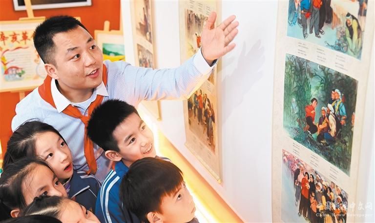 江西省宜春市袁州區(qū)靈泉街道,志愿者在給學(xué)生講述非遺文化。張 文攝(中經(jīng)視覺)