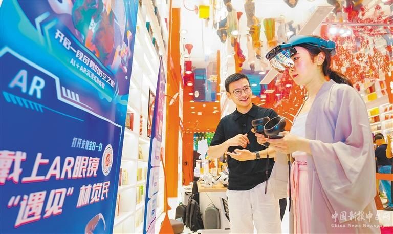福建省福州市鼓樓區(qū)福書軒的“數(shù)字+非遺”展示空間,觀眾在體驗(yàn)非遺文化表演。謝貴明攝(中經(jīng)視覺)