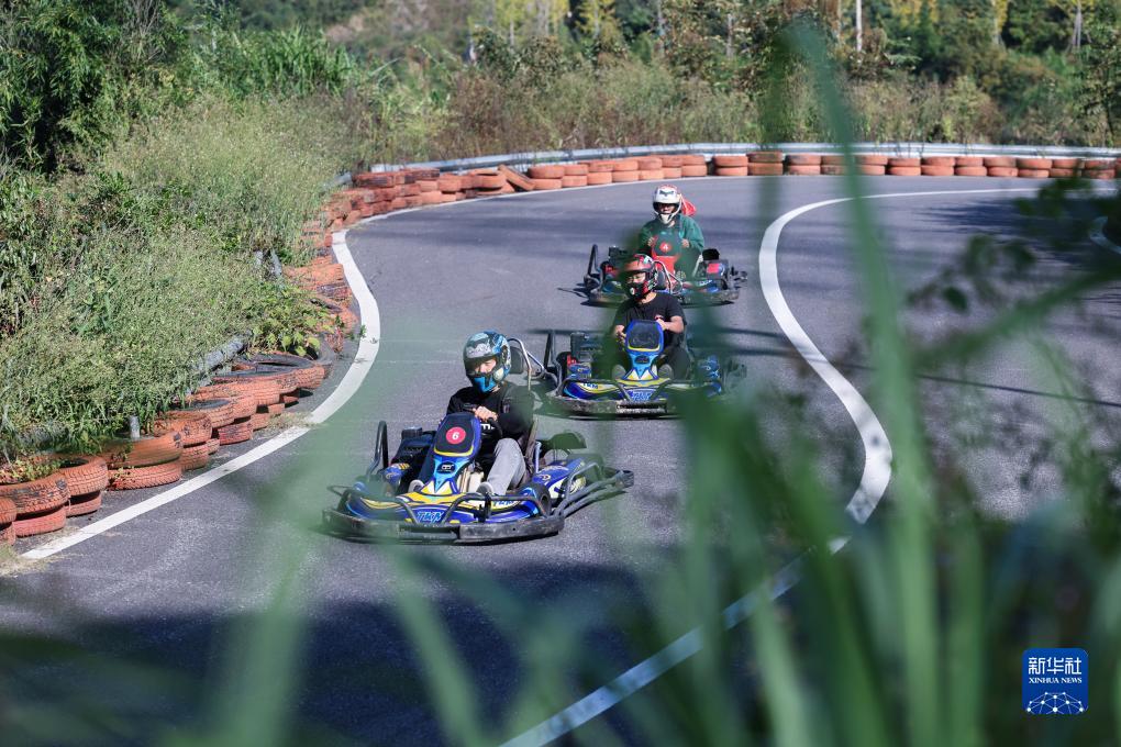 10月23日,游客在建德市楊村橋鎮(zhèn)嶺源樂活島休閑基地體驗(yàn)卡丁車。