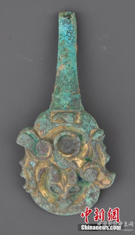 圖為出土的銅帶鉤(背)。咸陽市文物考古研究所 供圖