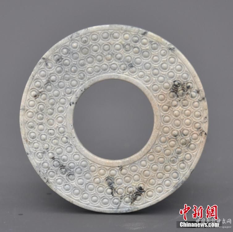 圖為出土的玉璧(正)。咸陽市文物考古研究所 供圖