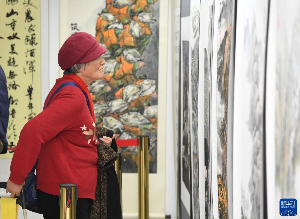 11月12日,觀眾參觀第十一屆“大美平谷·水墨周莊”書畫展。