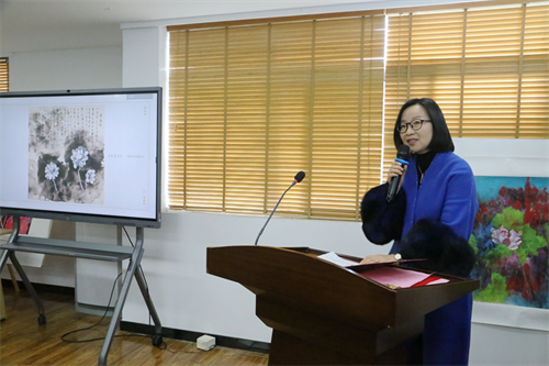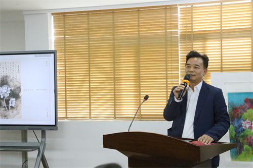 現(xiàn)場展示了徐馳50幅彩墨畫作品。徐馳介紹自己創(chuàng)作體會,并對重點(diǎn)畫作進(jìn)行解讀與分享。據(jù)介紹,其作品以東方傳統(tǒng)的“荷花”為題材,將西方的寫實(shí)主義、表現(xiàn)主義、抽象主義和中國當(dāng)代藝術(shù)巧妙地融合,雅俗共賞。
