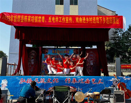 中國(guó)新報(bào)湖南訊【記者 葉亞山 通訊員 黃能果 華南陽(yáng) 肖?!繛榱碎_創(chuàng)陳家坊鎮(zhèn)禁毒反電詐工作新局面,提高人民群眾的禁毒意識(shí)、反電詐意識(shí),給群眾的精神文化生活注入新活力,11月29日湖南省新邵縣陳家坊鎮(zhèn)黨委政府邀請(qǐng)新邵縣精英花鼓戲劇中心,組織開展了以“禁毒反電詐”為主題的送戲下鄉(xiāng)演出活動(dòng)。