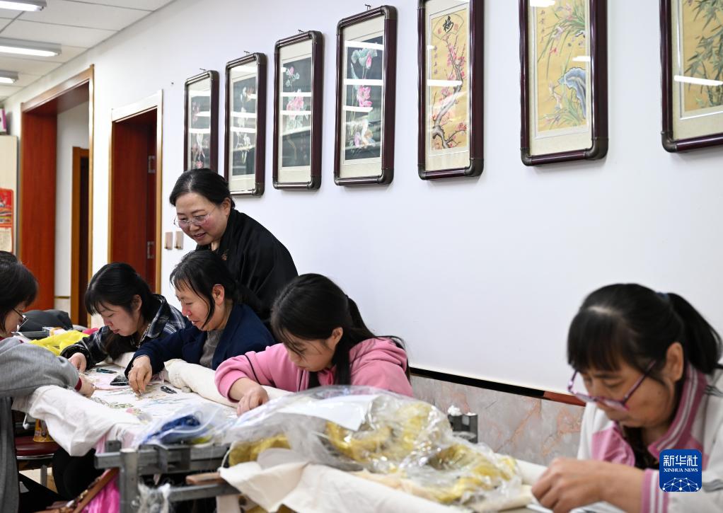 河北省非物質(zhì)文化遺產(chǎn)項目“王氏宮繡”代表性傳承人王國榮潛心研究刺繡30余年。近年來,王國榮在家鄉(xiāng)河北省隆化縣創(chuàng)立工作室,為高端定制服飾進行代加工,非遺技藝得到傳承的同時,還帶動當?shù)?0多名繡娘發(fā)展“指尖經(jīng)濟”,工坊年收益達120余萬元。