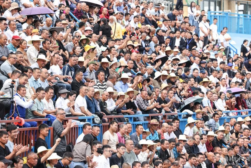 10月25日,全國和美鄉(xiāng)村籃球大賽(村BA)總決賽在貴州省臺(tái)江縣臺(tái)盤村開賽,觀眾在看臺(tái)上觀看比賽。新華社記者 歐東衢 攝