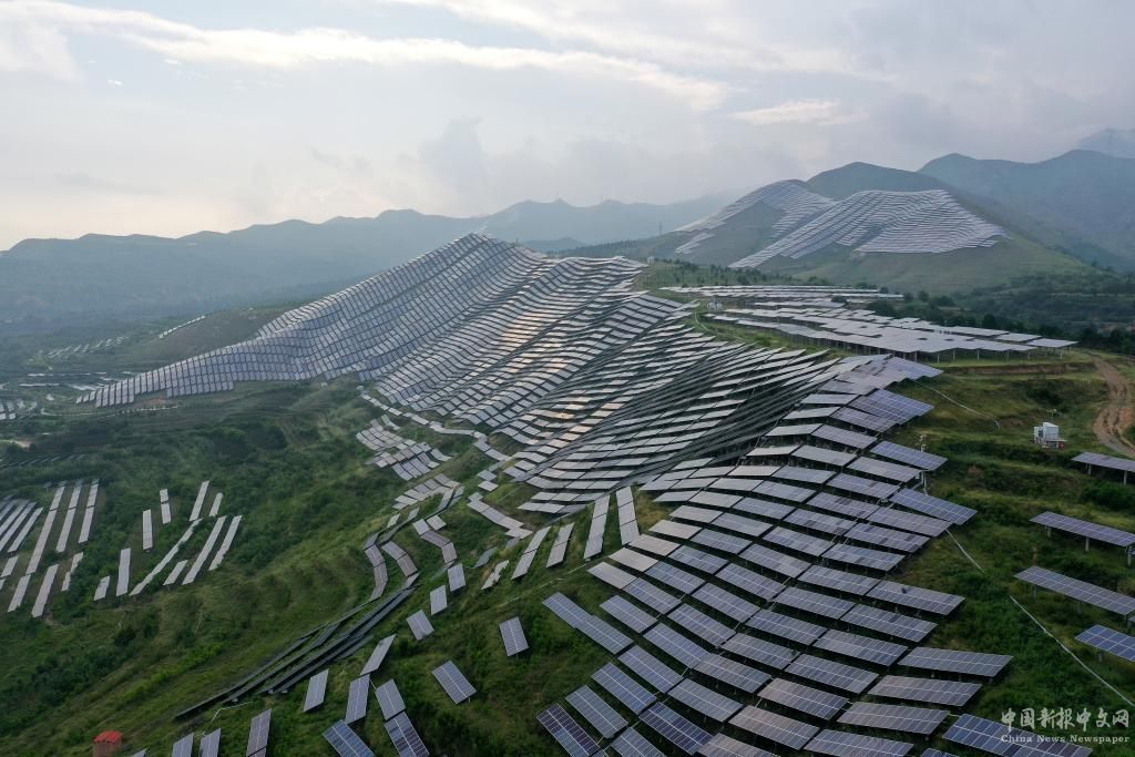 7月12日,山西省芮城縣學(xué)張鄉(xiāng)光伏電站(無人機(jī)照片)。新華社記者 詹彥 攝