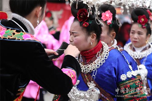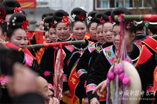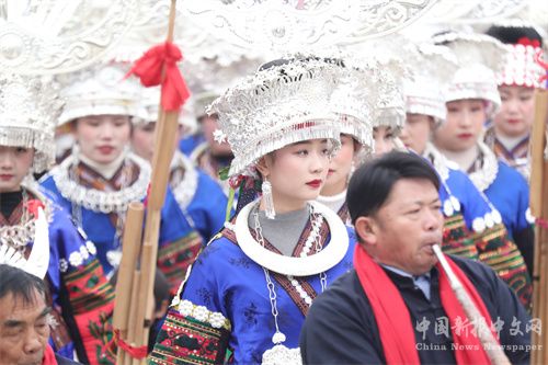 中國新報貴州訊(首席記者 劉鵬飛攝影報道)鼓聲陣陣,苗歌飛揚,身著盛裝,歡樂喜慶。12月19日,貴州凱里市三棵樹鎮(zhèn)腳高苗寨的苗族同胞身著盛裝齊聚蘆笙場,踩鼓、跳蘆笙舞,歡度2023年苗族鼓藏節(jié)。