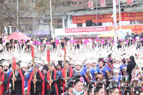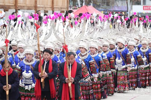 腳高苗寨隸屬于凱里市三棵樹鎮(zhèn),是此次過鼓藏節(jié)的苗族村寨之一,全寨百姓對13年一次的鼓藏節(jié)非常重視,許多在外地工作的村民早早就趕回了家,提前做好相關籌備工作,節(jié)日期間,除開門迎客、祭祀先祖、跳蘆笙等傳統(tǒng)的民俗活動以外,還安排了各種現代打籃球、唱歌、拔河等體育競賽活動。