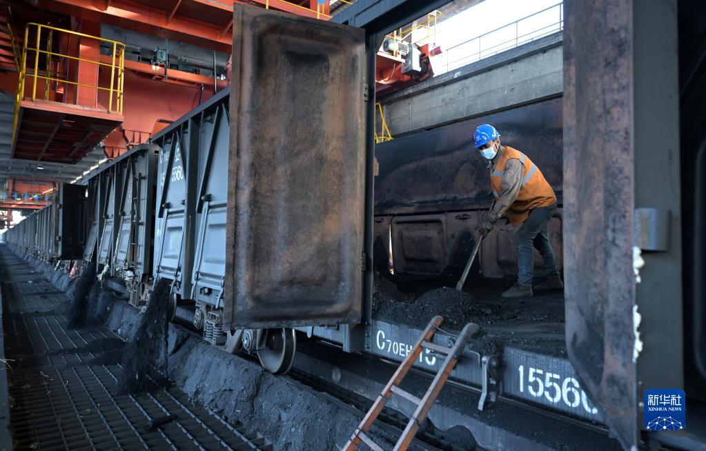 1月19日,在大唐安徽發(fā)電有限公司淮南洛河發(fā)電分公司,工作人員進(jìn)行卸煤作業(yè)。新華社記者 周牧 攝