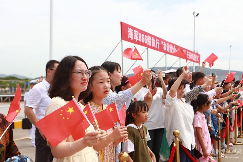 7月3日,浙江舟山某軍港碼頭,海軍“和平方舟”號醫(yī)院船歡送儀式現(xiàn)場。韓林 攝