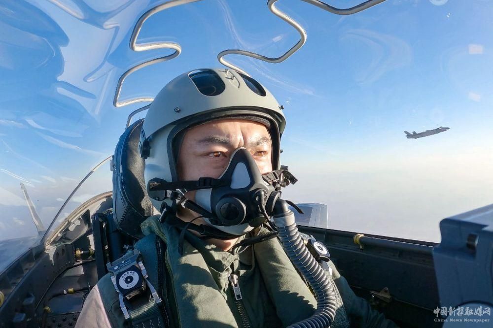↑全國人大代表、“強(qiáng)軍先鋒飛行大隊(duì)”大隊(duì)長高中強(qiáng)進(jìn)行編隊(duì)飛行訓(xùn)練(2023年2月9日攝)。新華社發(fā)(姜皓元 攝)