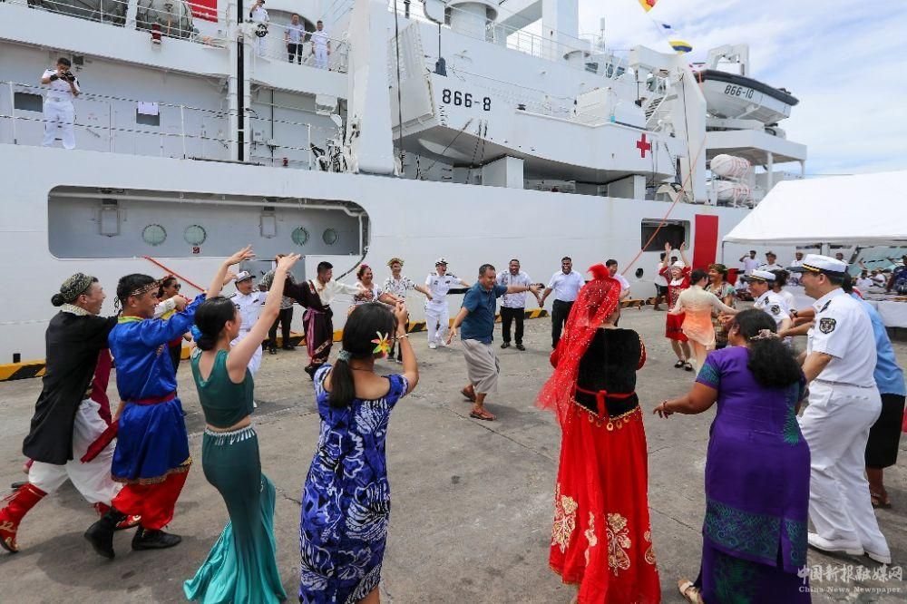 7月15日,基里巴斯首都塔拉瓦,碼頭上一片歡歌笑語。對于首次到訪的中國海軍“和平方舟”號醫(yī)院船,當(dāng)?shù)孛癖娪芍缘臍g迎與感激溢于言表。