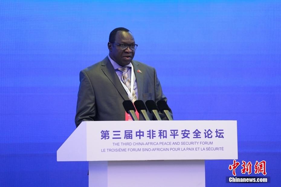 贊比亞共和國(guó)國(guó)防部長(zhǎng)盧福馬發(fā)言。中新社記者 崔楠 攝
