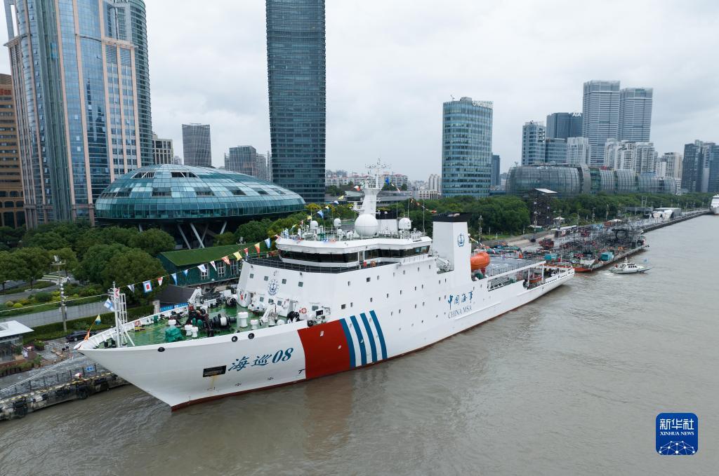 9月21日,“海巡08”輪靠泊在上海黃浦江邊。新華社記者丁汀攝