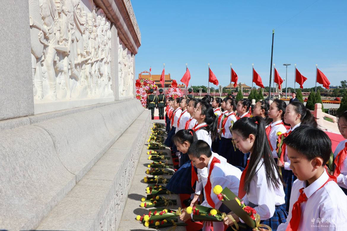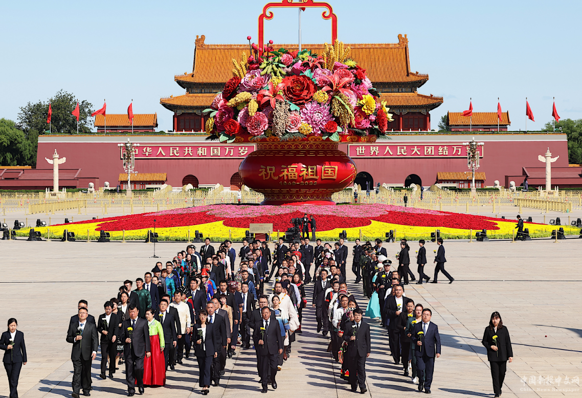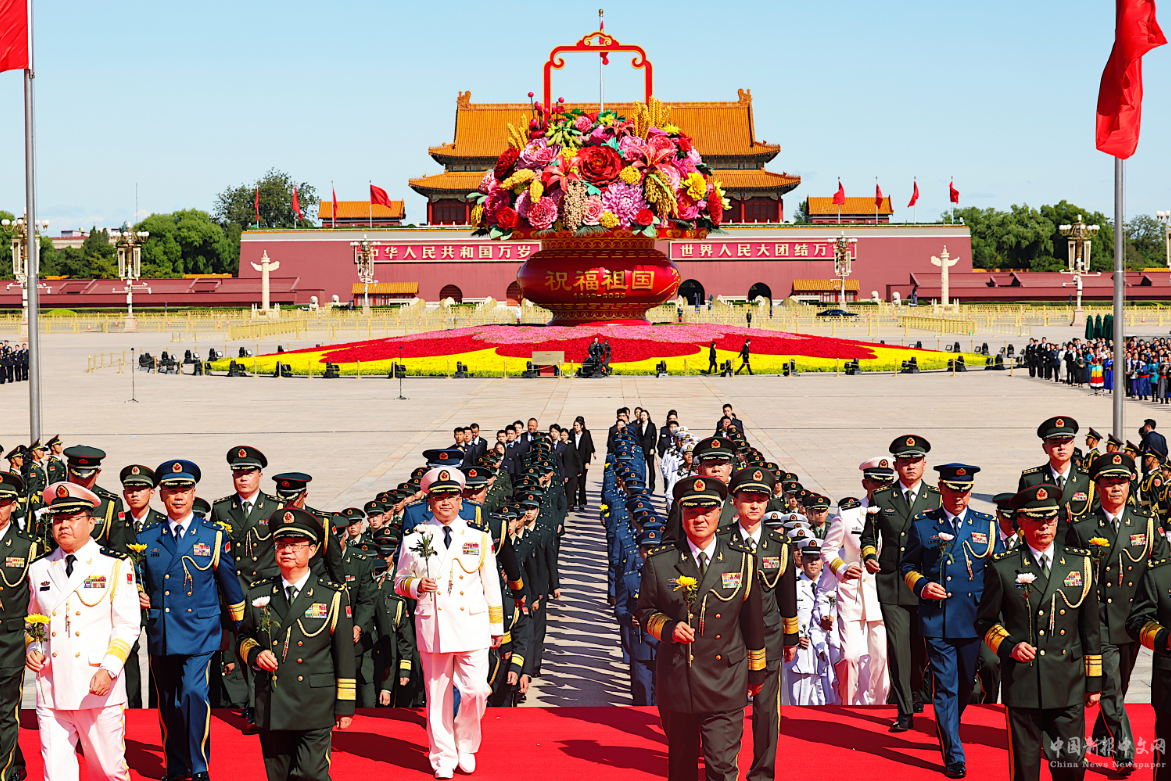 9月30日拍攝的烈士紀(jì)念日向人民英雄敬獻(xiàn)花籃儀式。中國日報(bào)記者 馮永斌 攝