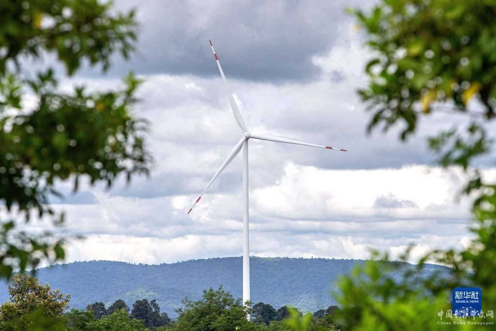 這是10月5日在泰國(guó)猜也蓬府拍攝的由中國(guó)金風(fēng)科技提供的風(fēng)力發(fā)電機(jī)。