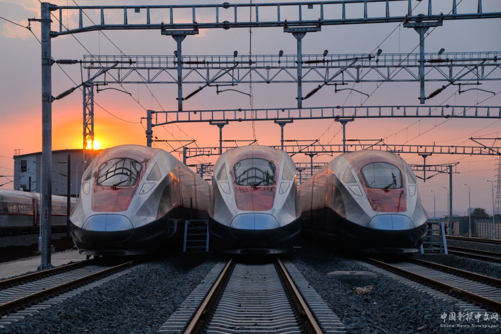 2023年8月17日,在印度尼西亞萬隆,雅萬高鐵高速動車組??吭谘湃f高鐵德卡魯爾動車所附近。