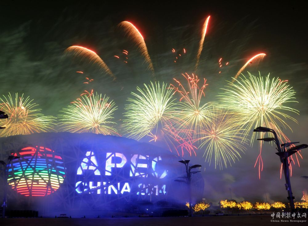 2014年11月10日,亞太經(jīng)合組織(APEC)第二十二次領(lǐng)導(dǎo)人非正式會議在北京舉行,北京在奧林匹克公園舉行焰火表演。