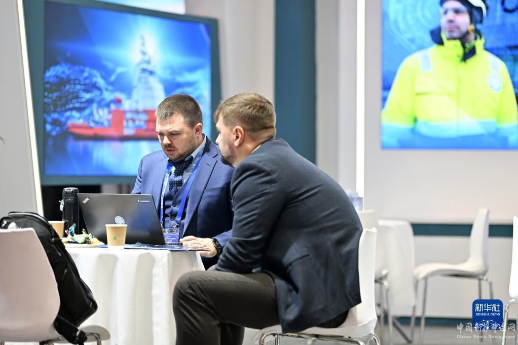 11月16日,在國(guó)家會(huì)展中心(天津),展商在博覽會(huì)上交流。