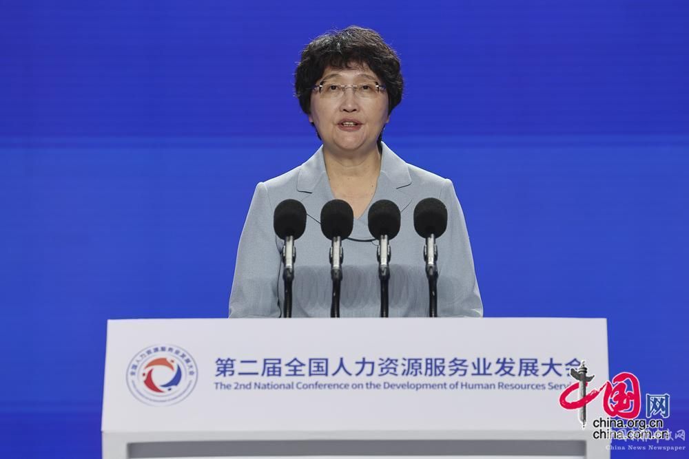 人力資源社會(huì)保障部部長(zhǎng)王曉萍致辭。中國(guó)網(wǎng)記者 董寧 攝影