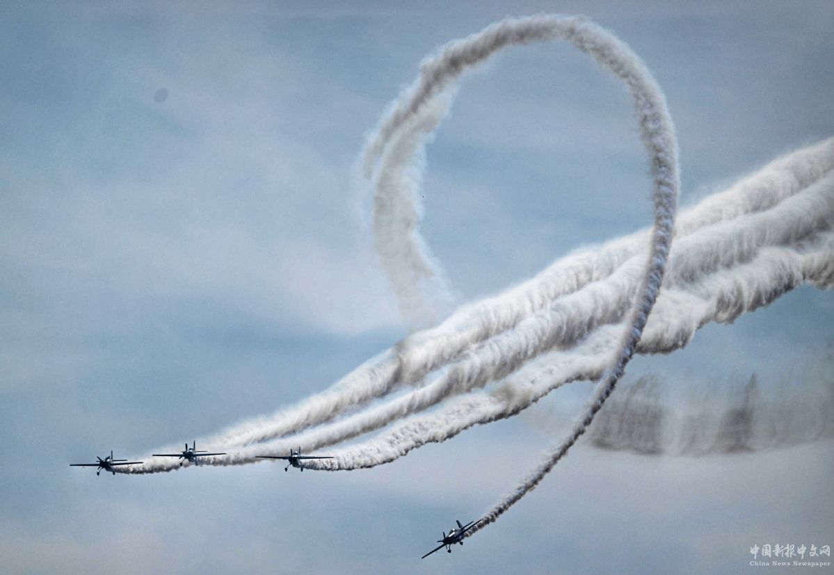 中國湖南“山河”飛行表演隊為在場觀眾帶來精彩飛行表演。尹鋼 攝