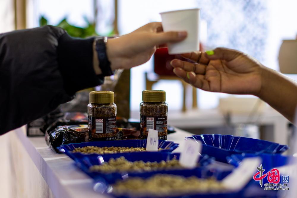 觀眾品嘗來自肯尼亞的咖啡。中國網(wǎng)記者 鄭亮攝
