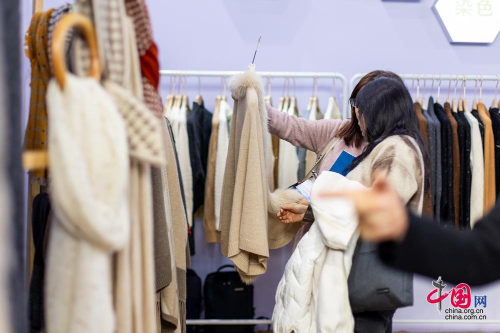 觀眾正在挑選來自烏蘭巴托的羊絨產(chǎn)品。中國網(wǎng)記者 鄭亮攝