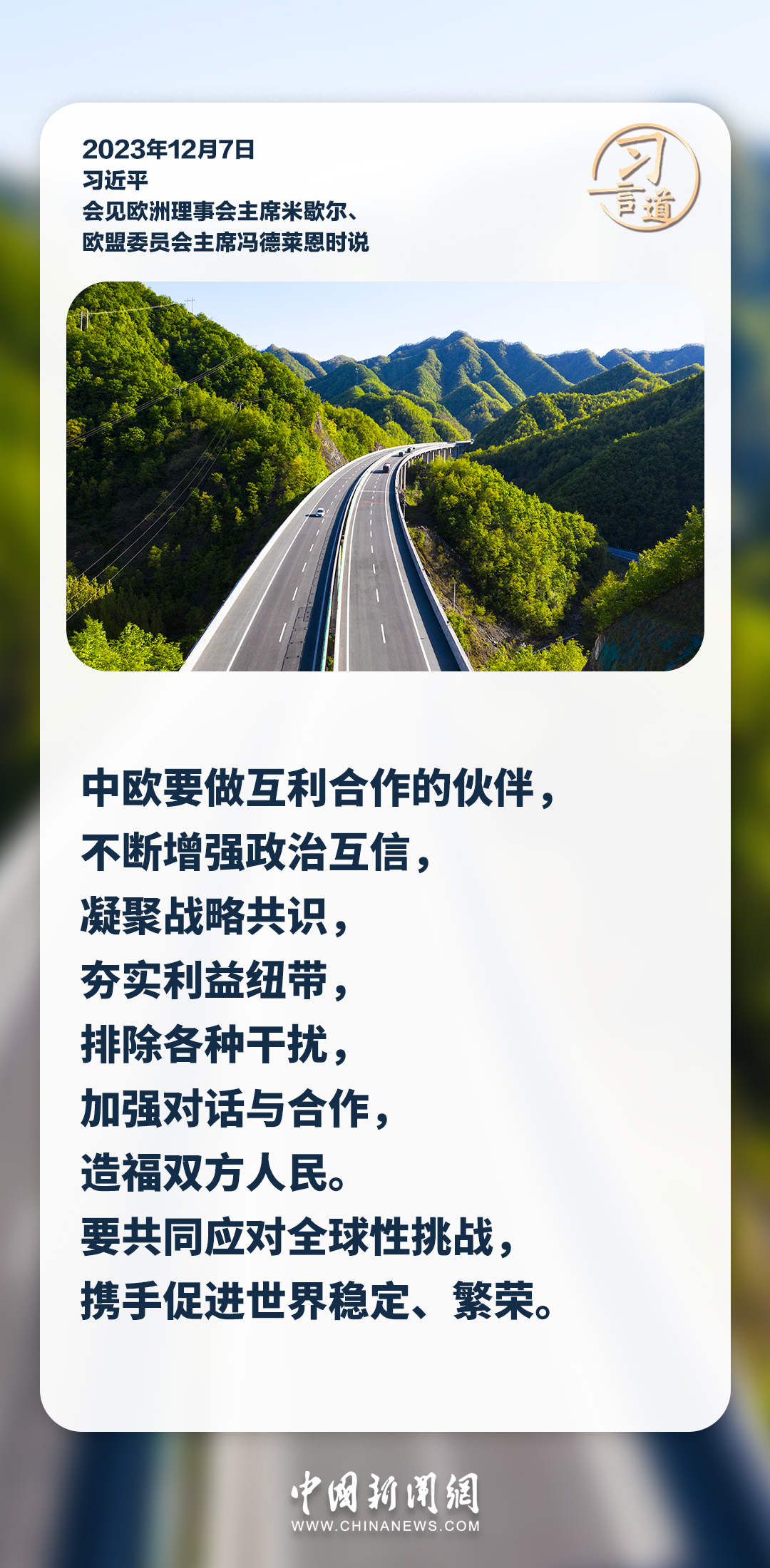 12月7日,國家主席習(xí)近平在釣魚臺(tái)國賓館會(huì)見來華舉行第二十四次中國—歐盟領(lǐng)導(dǎo)人會(huì)晤的歐洲理事會(huì)主席米歇爾和歐盟委員會(huì)主席馮德萊恩。習(xí)近平說——