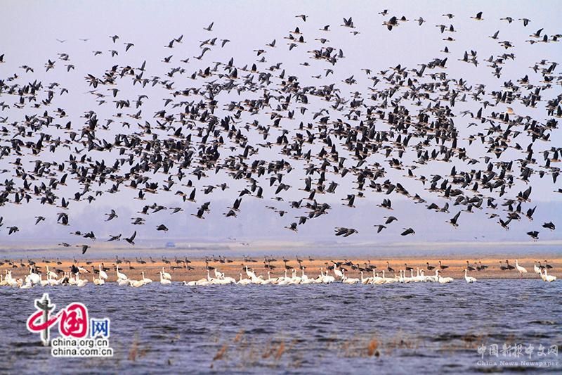 湖南洞庭湖遷徙候鳥。(姚毅 攝)