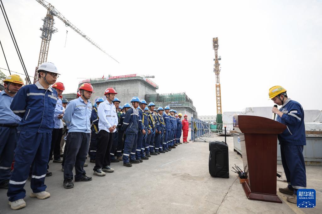 2月6日,海南昌江核電廠施工管理團(tuán)隊在“玲龍一號”吊裝前開工前會。