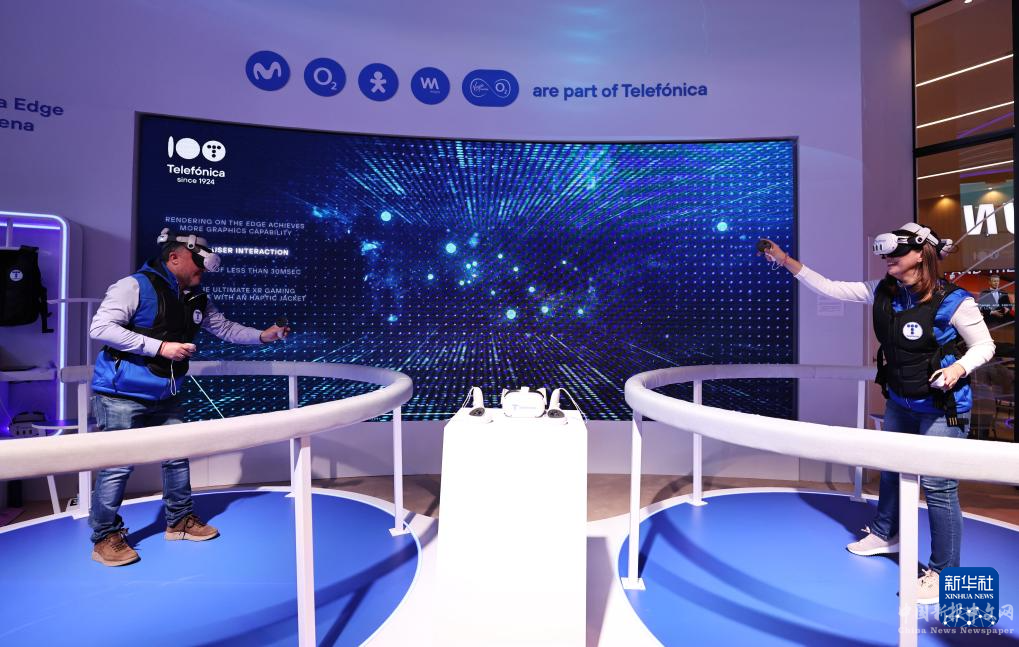 2月26日,人們在西班牙巴塞羅那舉行的2024年世界移動通信大會上體驗設(shè)備。新華社記者 高靜 攝