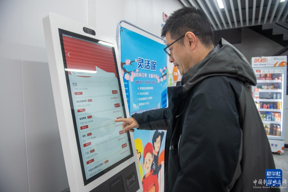 2月29日,求職者在寧波市江北區(qū)洪塘街道零工市場(chǎng)內(nèi)的自助機(jī)上查看崗位招聘信息。