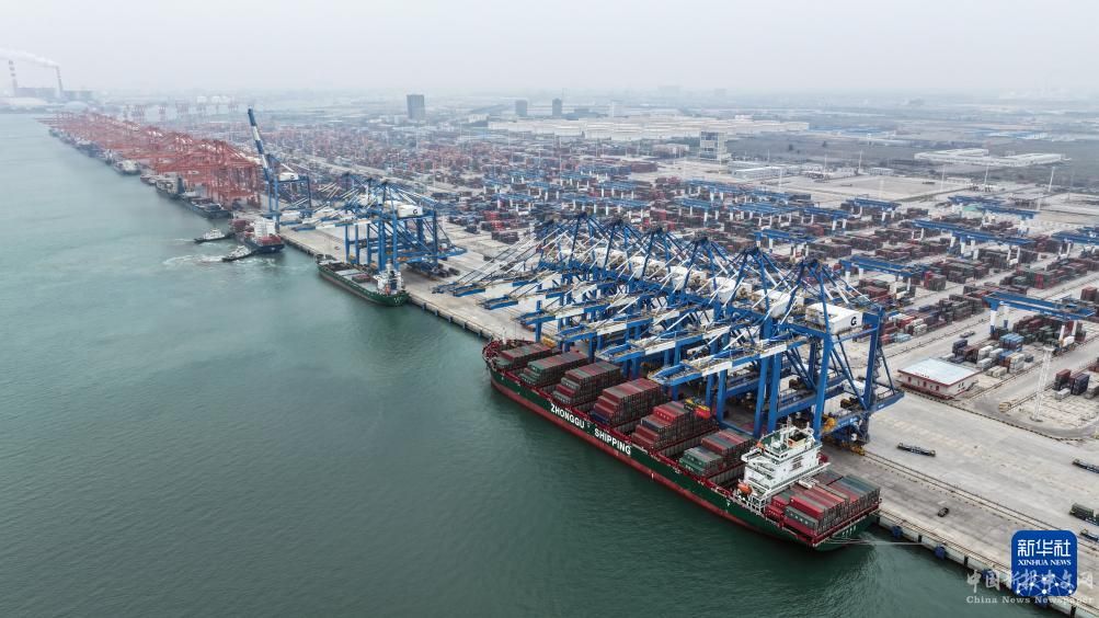 在廣西欽州港碼頭,多艘海輪在卸貨(3月1日攝,無(wú)人機(jī)照片)。