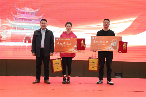 活動現(xiàn)場,茅臺保健酒業(yè)區(qū)域城市經(jīng)理鄧濤、岳陽市森茂商貿(mào)有限公司董事長嚴(yán)香華為4名優(yōu)秀經(jīng)銷商頒發(fā)了“最佳銷售貢獻(xiàn)獎”、“最佳開瓶獎”。