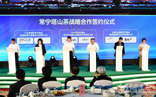 此次推介會(huì),既是共品茶香、共論茶道、共商茶業(yè)的盛會(huì),也是推介茶品、推廣茶事的舞臺(tái)。推介會(huì)上碩果累累,湖南谷佳茶業(yè)生態(tài)農(nóng)業(yè)科技有限公司與珠海常寧商會(huì)、湖南瑤園生態(tài)農(nóng)業(yè)科技發(fā)展有限公司與深圳常寧商會(huì)、常寧市興華農(nóng)業(yè)開(kāi)發(fā)有限公司與上海常寧商會(huì)、湖南省瑞豐茗香茶業(yè)有限公司與廣州常寧商會(huì)、常寧市天堂山云霧茶開(kāi)發(fā)有限公司與長(zhǎng)沙常寧商會(huì)、湖南?,庌r(nóng)業(yè)科技有限公司與東莞常寧商會(huì),分別簽署了“常寧塔山茶”合作意向,為做大常寧茶產(chǎn)業(yè),打響“常寧塔山茶”品牌,助力常寧茶葉產(chǎn)業(yè)品牌綠色發(fā)展方向,筑牢鄉(xiāng)村振興的產(chǎn)業(yè)基礎(chǔ),譜寫常寧茶產(chǎn)業(yè)高質(zhì)量發(fā)展新篇章!同時(shí),還表彰了2023年度優(yōu)秀企業(yè)、2023年度先進(jìn)單位,宣布了2022-2023參評(píng)獲獎(jiǎng)企業(yè)名單。