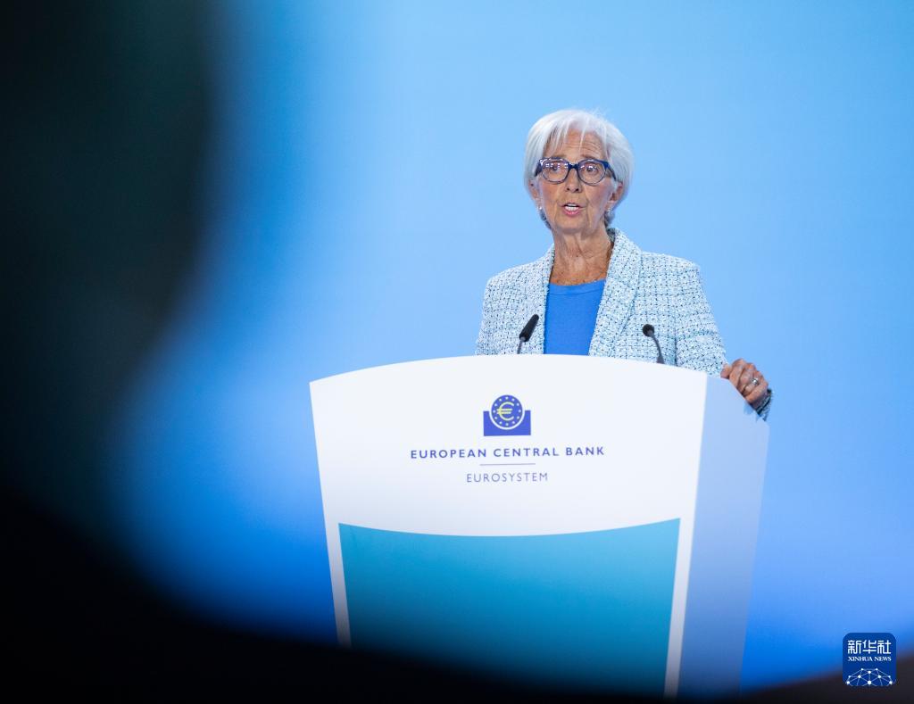 6月6日,歐洲中央銀行行長(zhǎng)拉加德在德國(guó)法蘭克福歐洲中央銀行總部舉行的新聞發(fā)布會(huì)上講話。