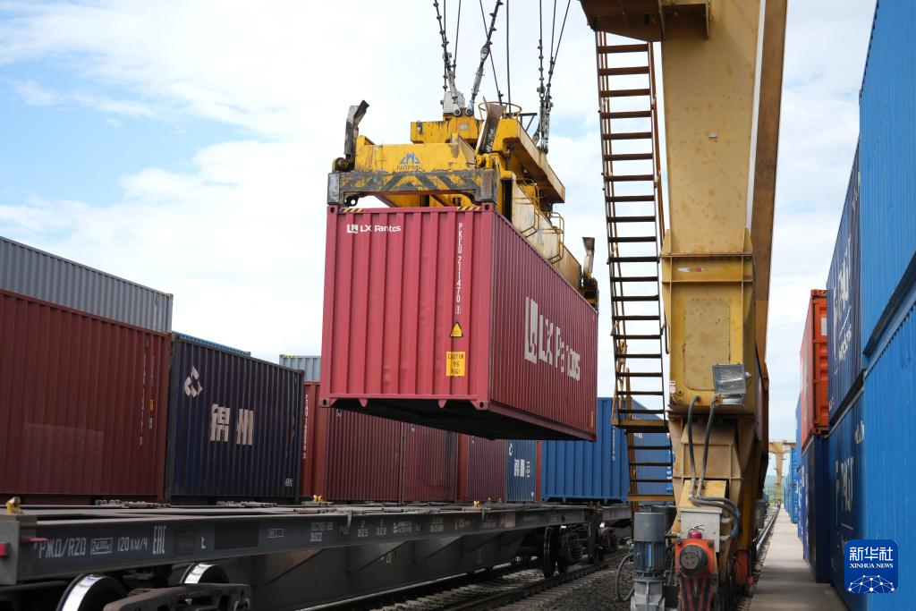 8月6日,中國(guó)鐵路哈爾濱局集團(tuán)有限公司內(nèi)蒙古滿洲里站貨運(yùn)車間在對(duì)回程中歐班列進(jìn)行卸車作業(yè)。新華社發(fā)(黃旭攝)