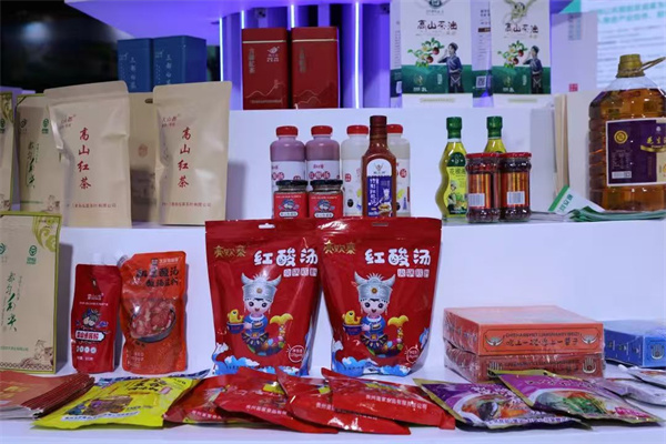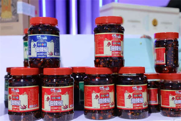 現(xiàn)場,參展企業(yè)一方面采用展板展示東西部協(xié)作成果,另一方面搭建專館推薦當(dāng)?shù)剞r(nóng)特產(chǎn)品、名優(yōu)小吃。如安順關(guān)嶺牛肉、六盤水盤州火腿、遵義鳳岡鋅硒茶、黔南長順綠殼雞蛋、黔西南望謨山茶油、黔東南麻醬藍(lán)莓汁、畢節(jié)大方天麻、銅仁江口蘿卜豬等。