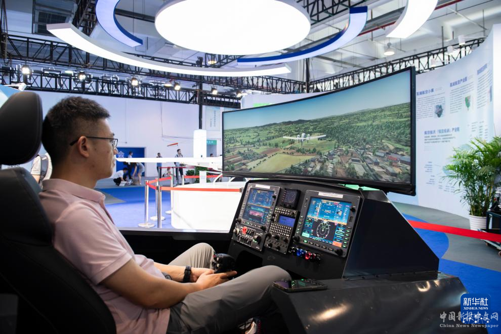 9月6日,觀眾在2024低空經濟發(fā)展大會創(chuàng)新成果展區(qū)體驗飛行模擬器。