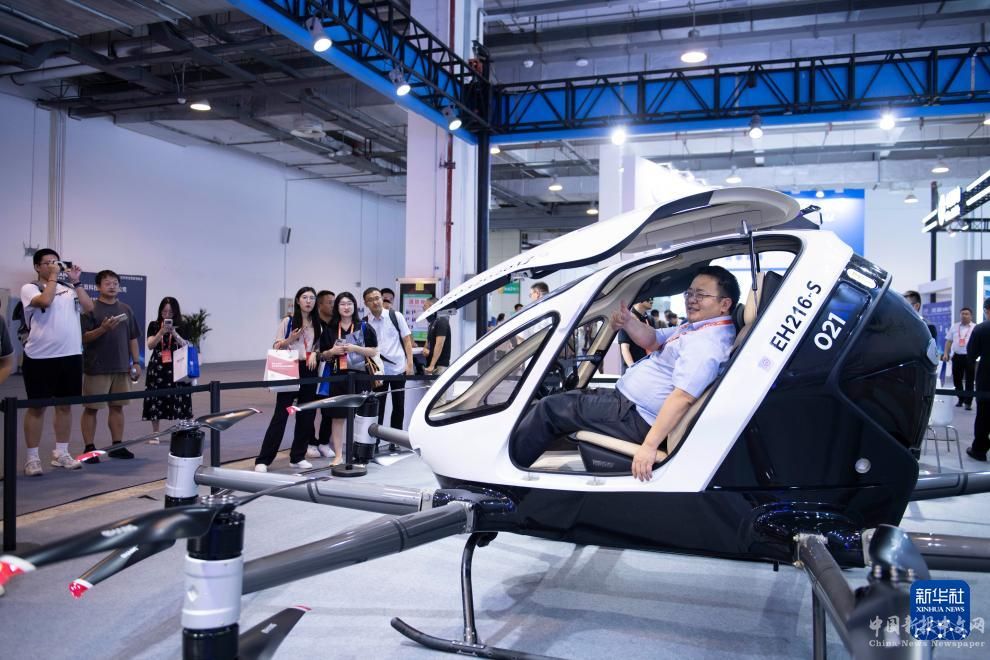 9月6日,觀眾在2024低空經濟發(fā)展大會創(chuàng)新成果展區(qū)了解一款電動垂直起降飛行器。