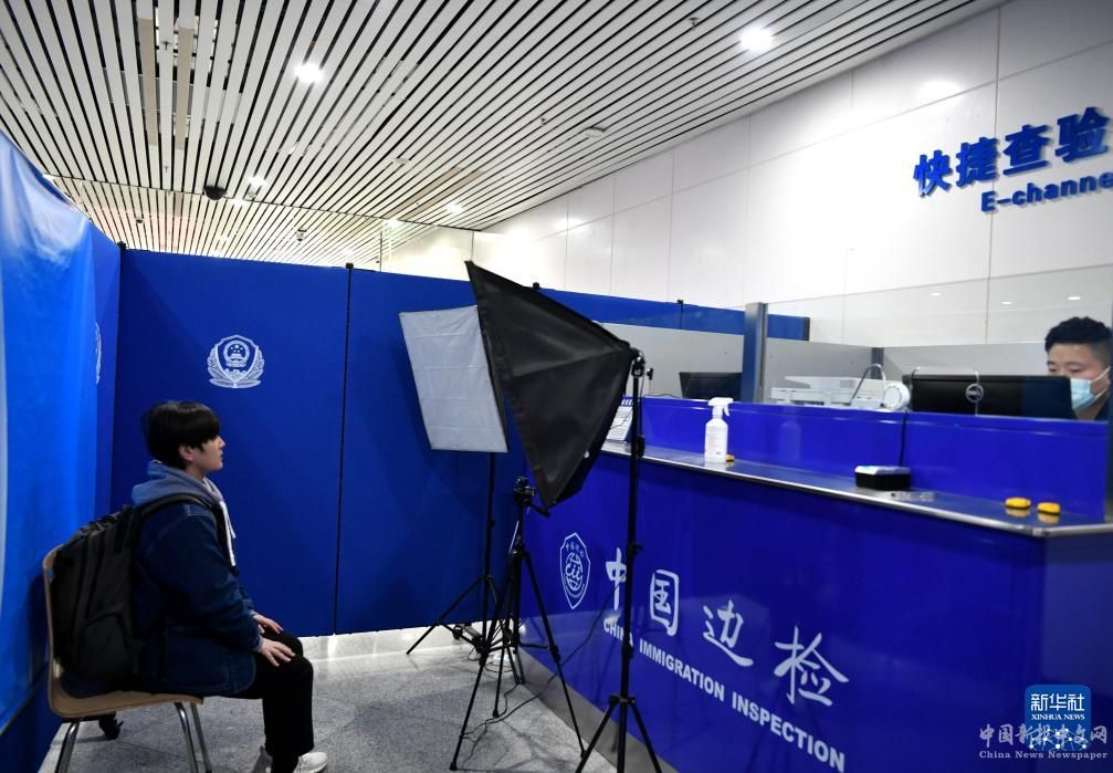 1月1日,在福州長樂國際機場的快捷通道信息采集點,福州機場邊檢站民警在為臺胞進行影像采集。