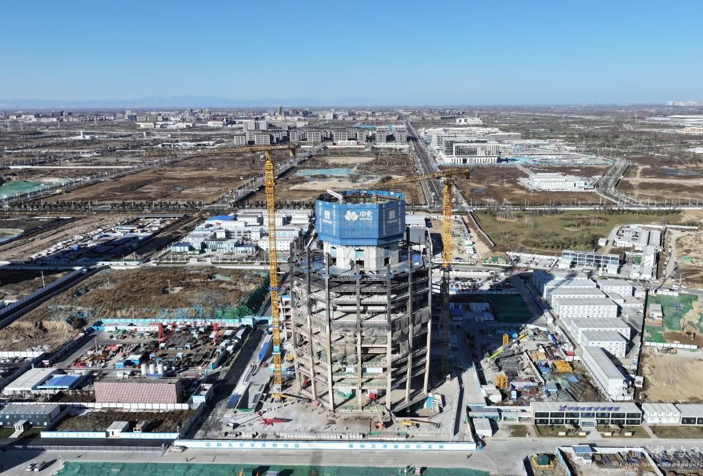 設(shè)計(jì)結(jié)構(gòu)高度150米的中國中化大廈,是雄安新區(qū)較高的建筑之一。“每過7天,這座大樓就能‘長高’一層。”中建二局三公司中國中化大廈項(xiàng)目總工程師張劍林說。