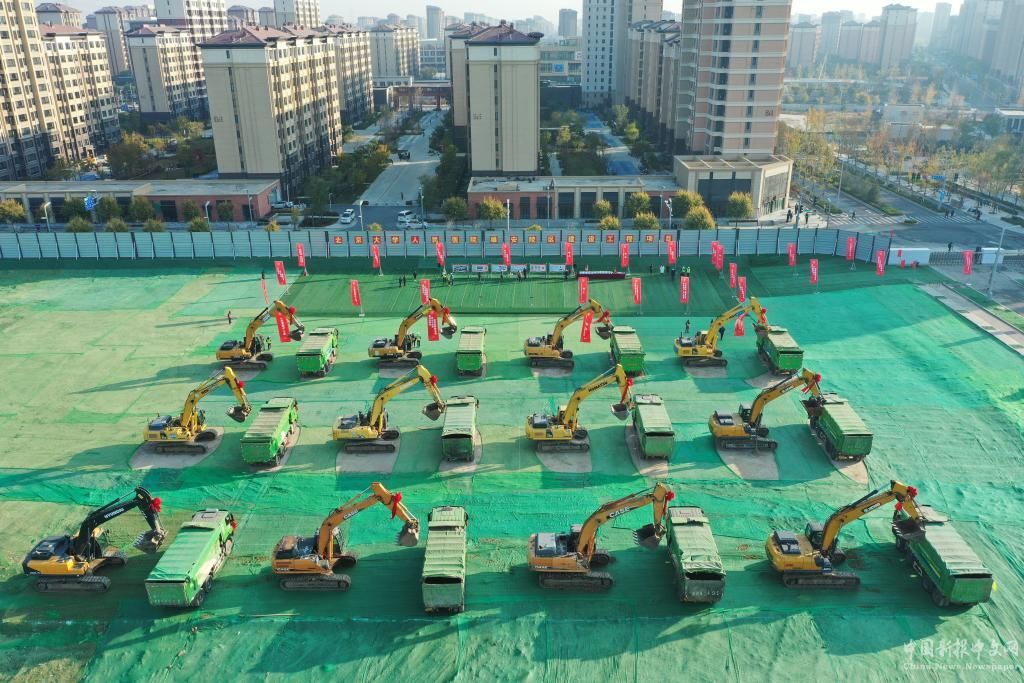 北京大學(xué)人民醫(yī)院雄安院區(qū)建設(shè)工程項(xiàng)目開工動(dòng)員會(huì)現(xiàn)場(chǎng)(2023年11月20日攝,無人機(jī)照片)。新華社發(fā)